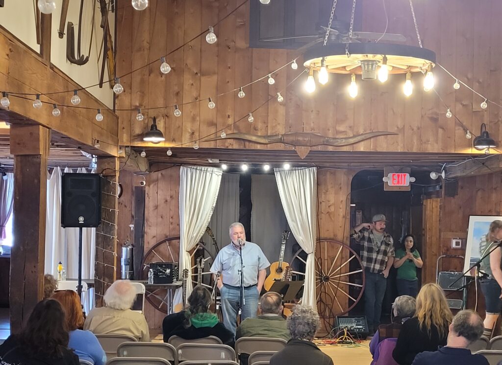 Cliff leading “Chicken on a Raft” at the 2025 Powder Mill Barn Fundraiser, 12 Apr, Hazardville, CT, for the upcoming 4th CT Sea Music Festival in Essex, CT.